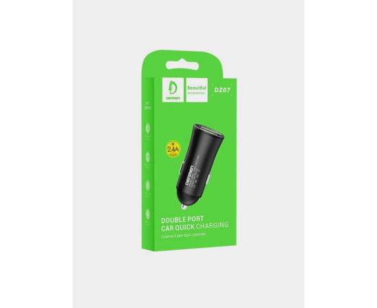 Адаптер питания автомобильный Denmen DZ07, 2.4А, 2 USB, 5V, пластик, серебристый, фирменная упаковка