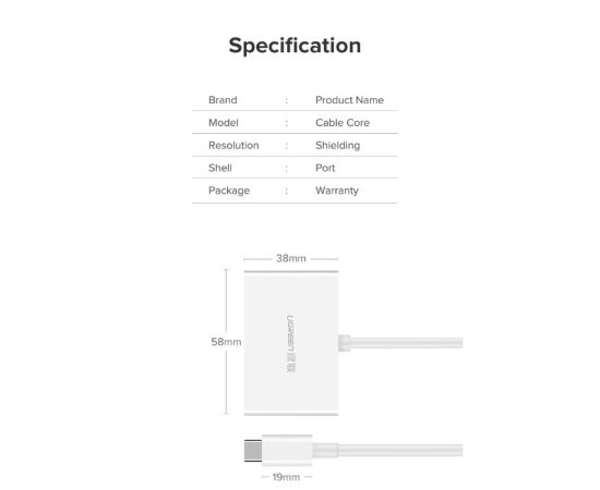 Адаптер UGreen MM123 (30843) USB Type C to HDMI + VGA Converter белый