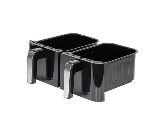 Две независимые зоны приготовления общим объемом 9 литров (4,5 л + 4,5 л). Вы можете одновременно готовить основное блюдо в одной корзине и гарнир в другой, устанавливая для каждой зоны свои настройки температуры и времени. 50 бумажных форм в комплекте обеспечивают удобство приготовления и очистки корзин.