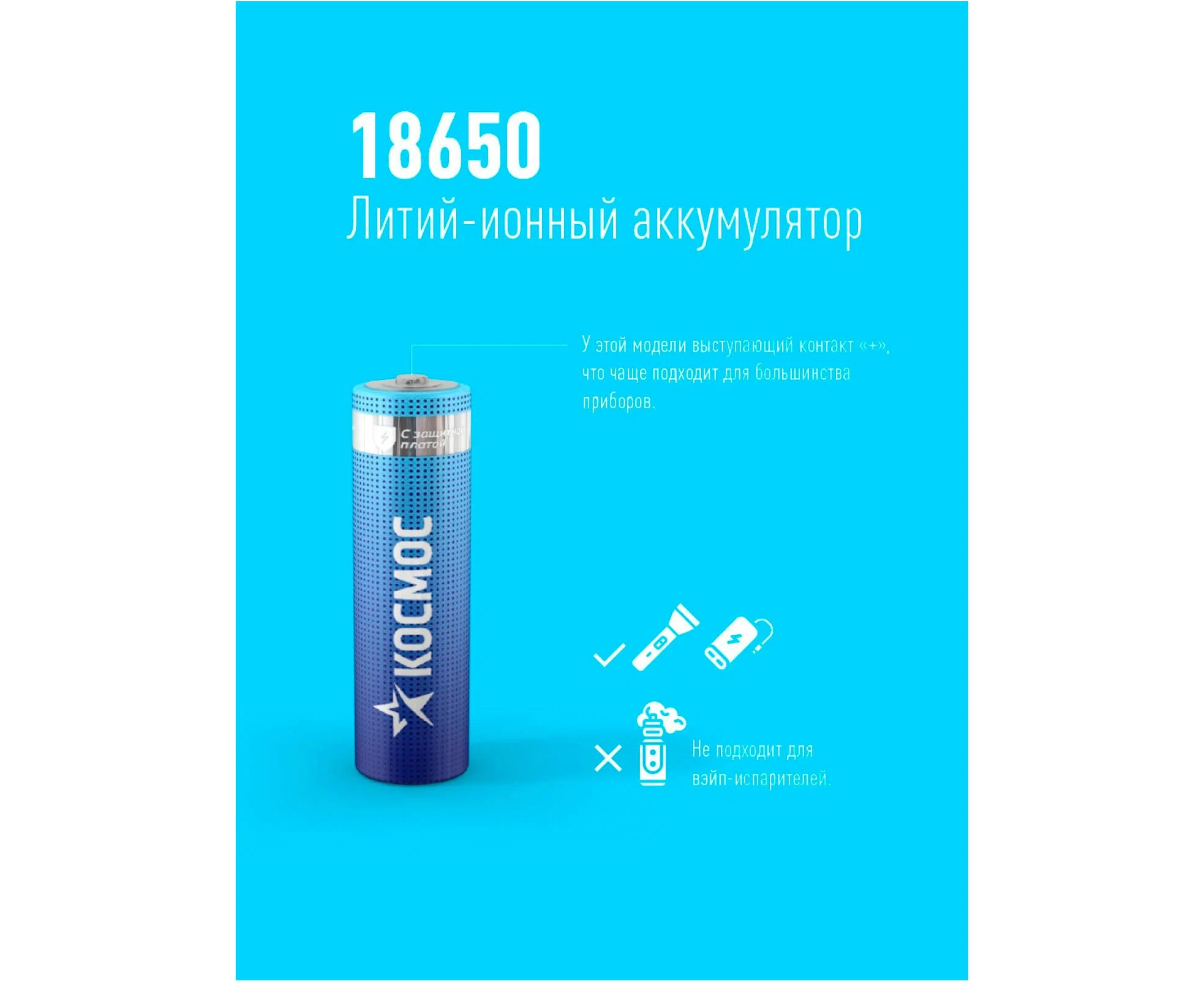 Аккумулятор Космос 18650 Li-ion 2600mAh KOC18650Li-ion26PBL1