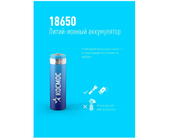 Аккумулятор Космос 18650 Li-ion 3400mAh KOC18650Li-ion34UBL1