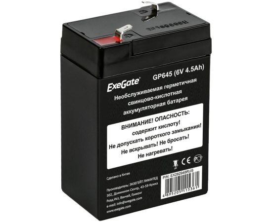 Аккумуляторная батарея ExeGate GP645 (6V 4.5Ah, клеммы F1) 282948