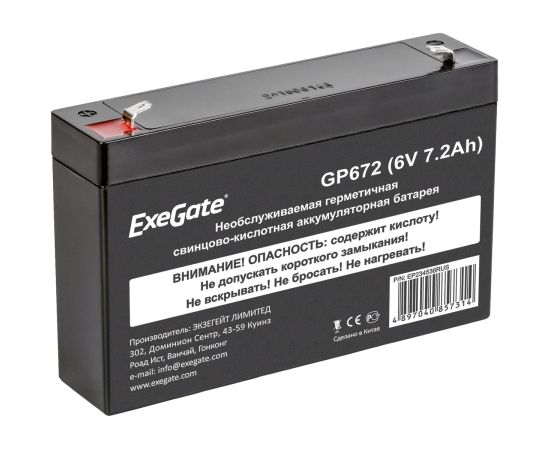 Аккумуляторная батарея ExeGate GP672 (6V 7.2Ah, клеммы F1) 234536