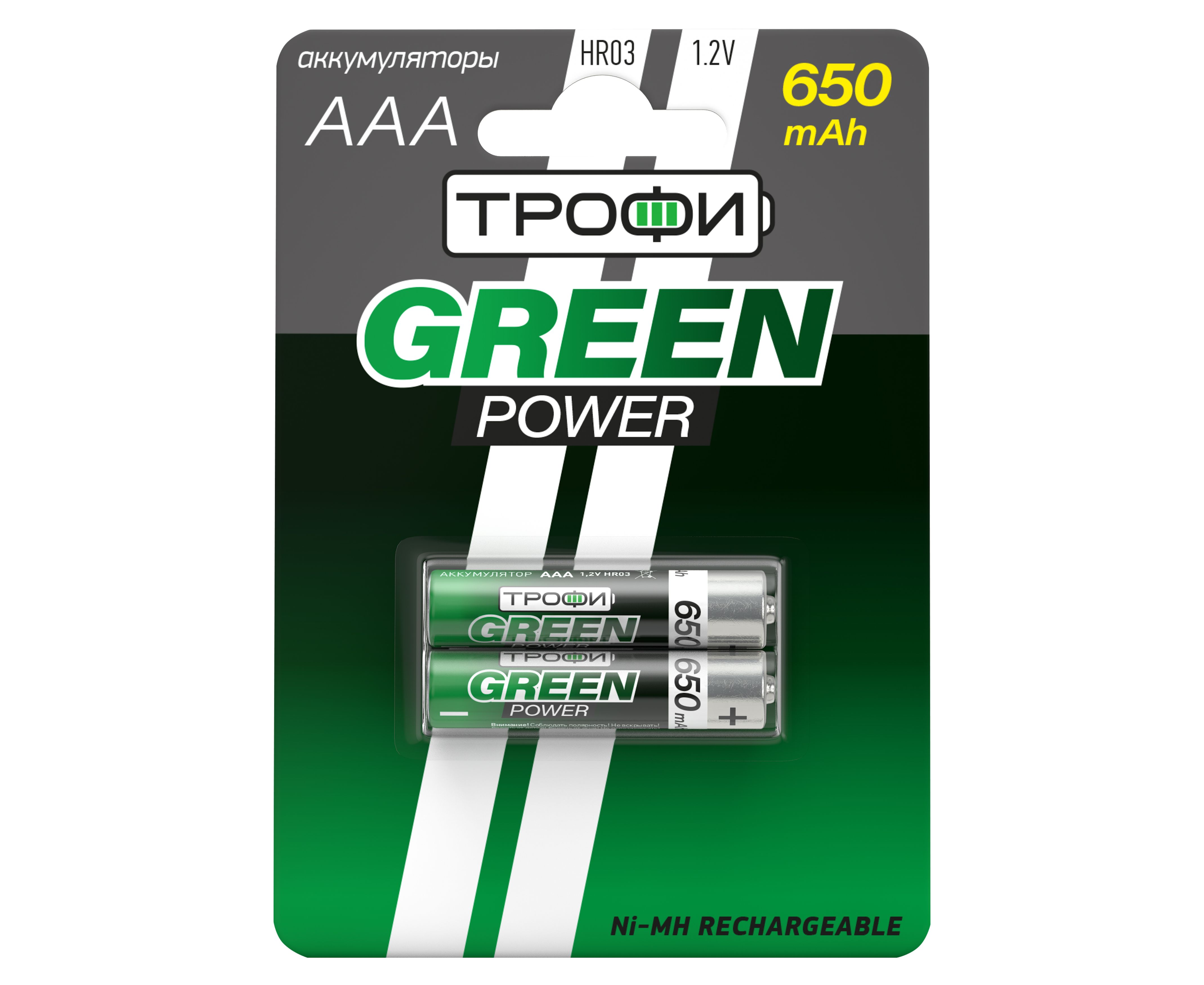 Аккумуляторы NiMH Трофи HR03-2BL 650 mAh GREEN POWER (20/240/17280)
