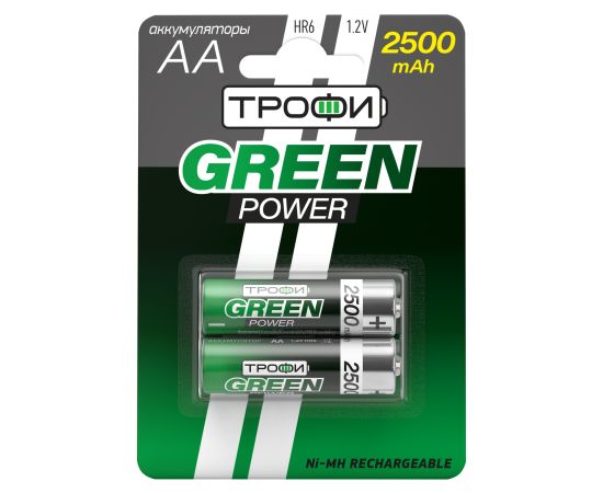 Аккумуляторы NiMH Трофи HR6-2BL 2500 mAh GREEN POWER (20/240/11520)