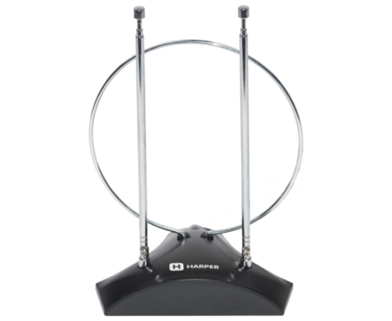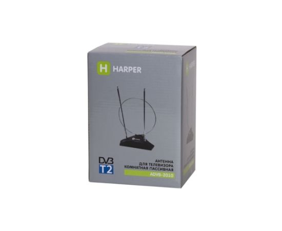 Антенна HARPER ADVB-2010 комнатная, пассивная; Принимаемый сигнал: DVB-T2; Диапазон: VHF / UHF (174–230 MHz, 470-862 MHz); Усиление: 5-7 dB; Сопротивление: 75 Ω; Коэффициент шума: ≤3 dB; Длина кабеля: 1,5 м