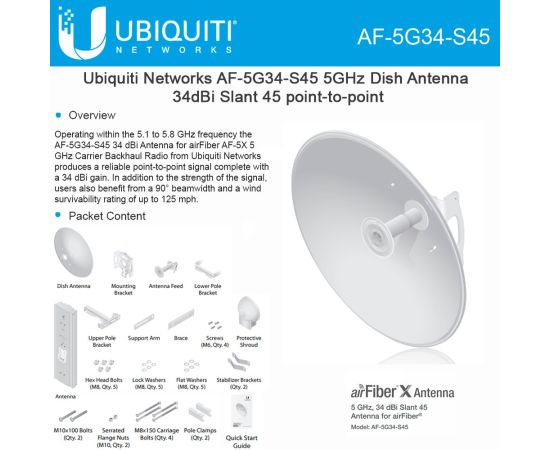 Антенна UBIQUITI DISH AIRFIBERX 5GHZ AF-5G34-S45