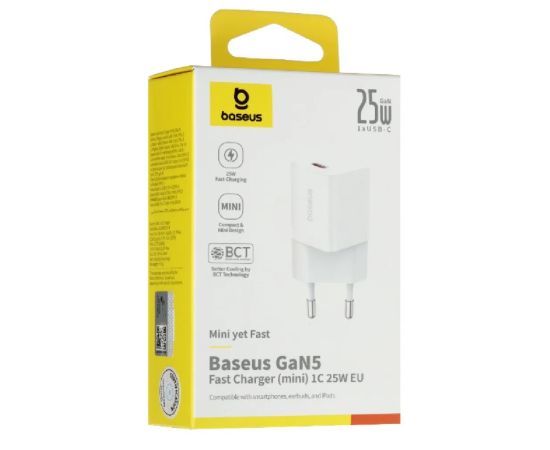 АП сетевой Baseus P101090923-00 Gan5 mini, 3.0А, 1 Type-C, 25W, 9V, пластик, белый