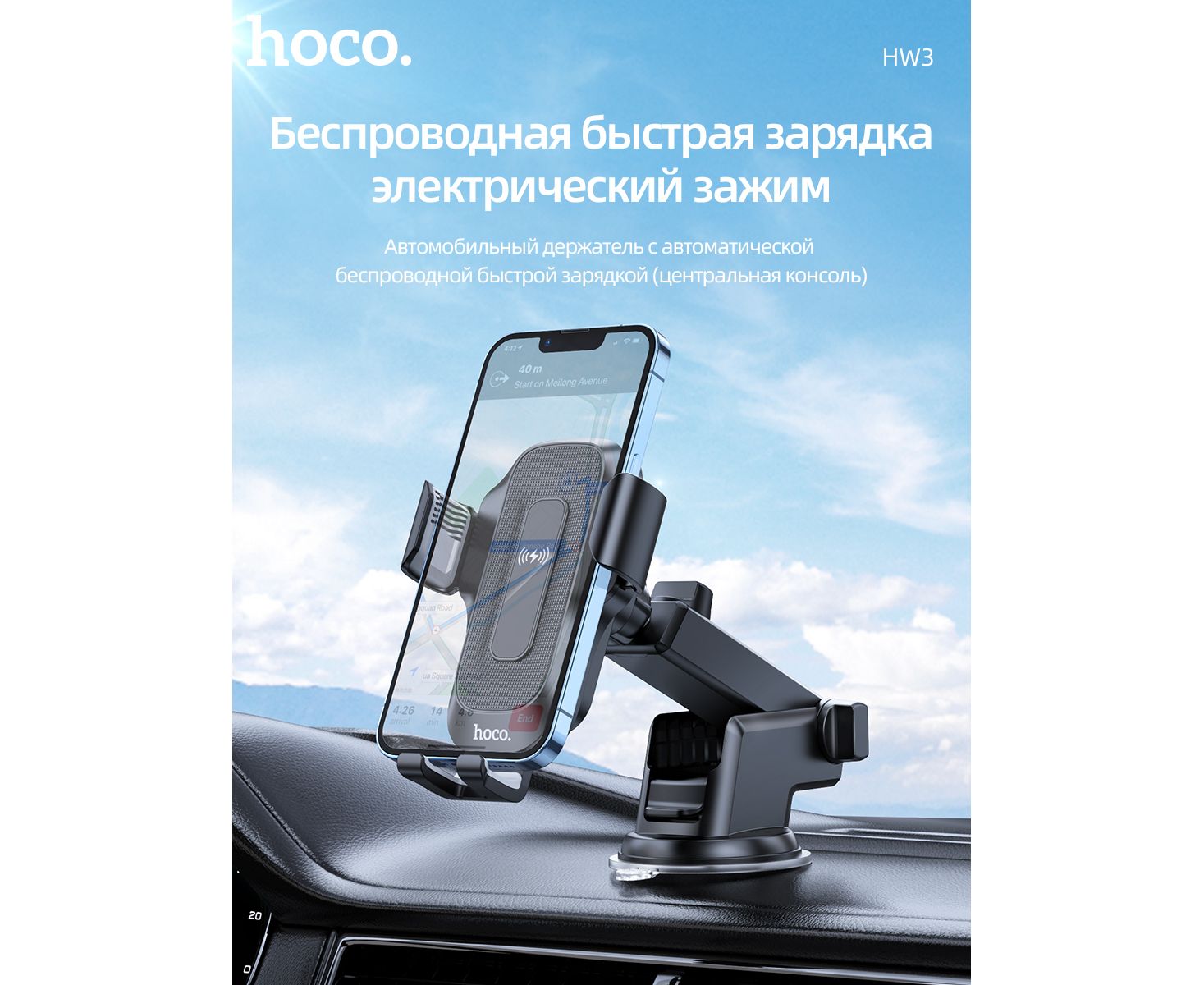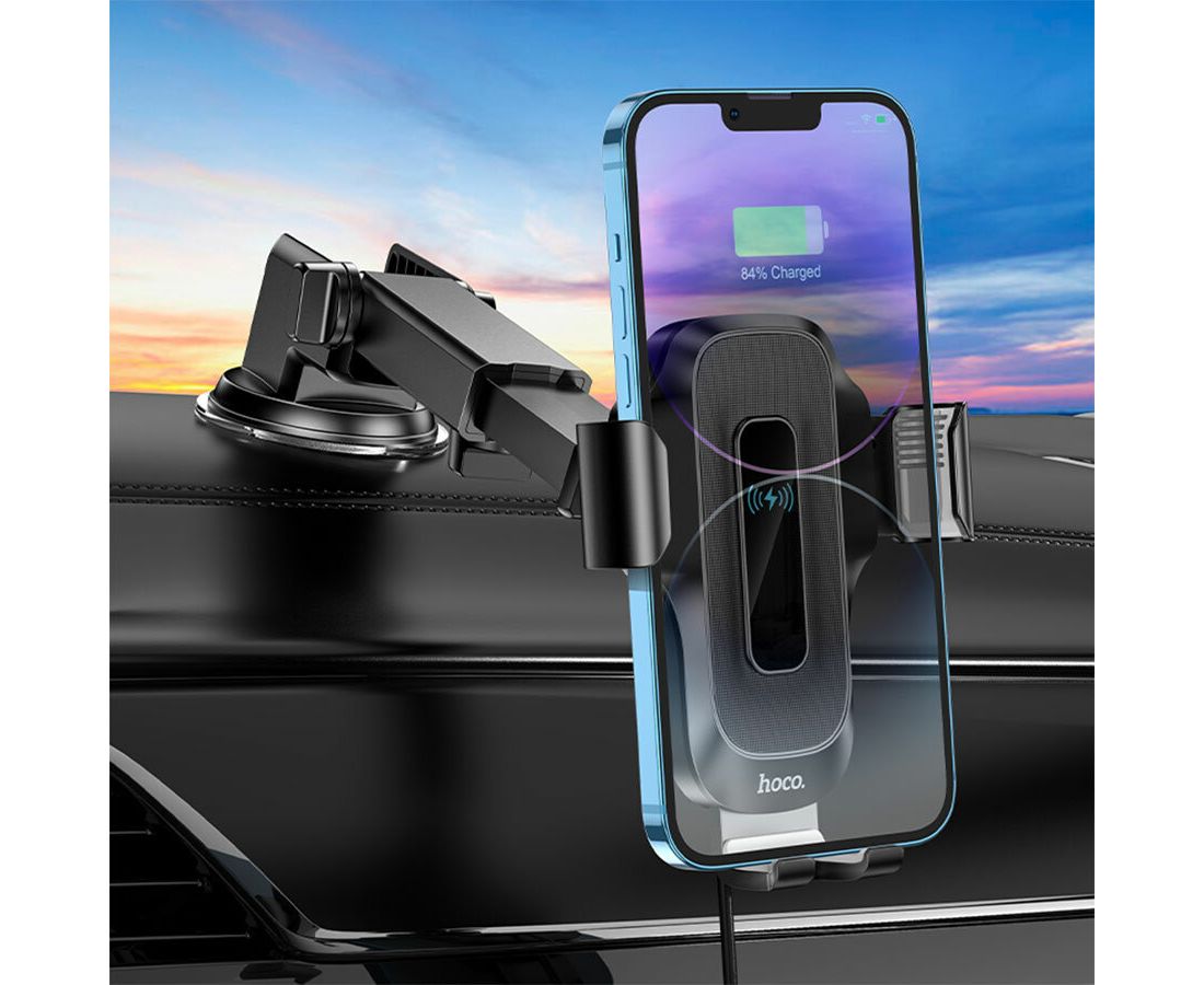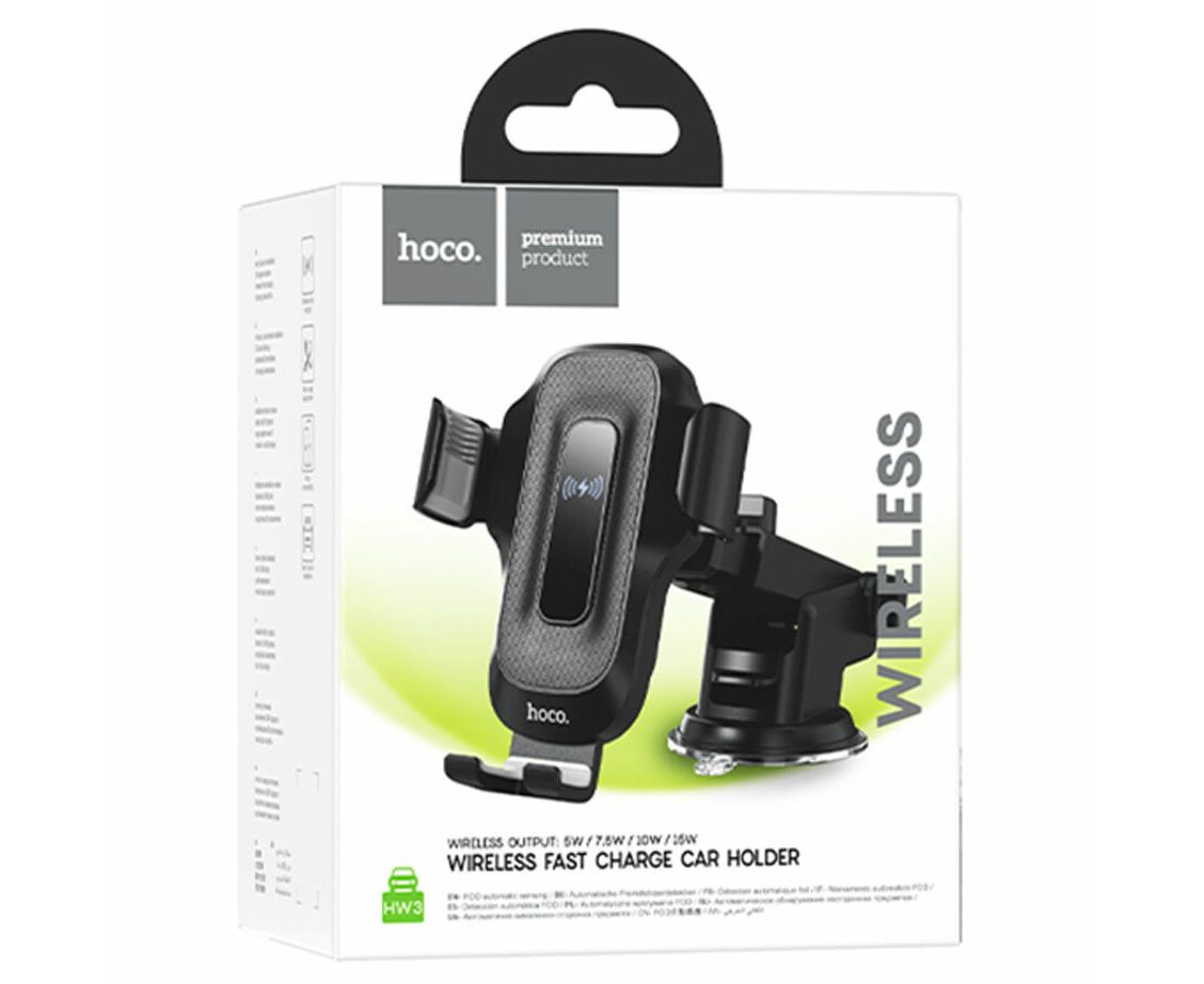 Автомобильный держатель HOCO HW3 Wise automatic induction wireless fast charging car (черный)