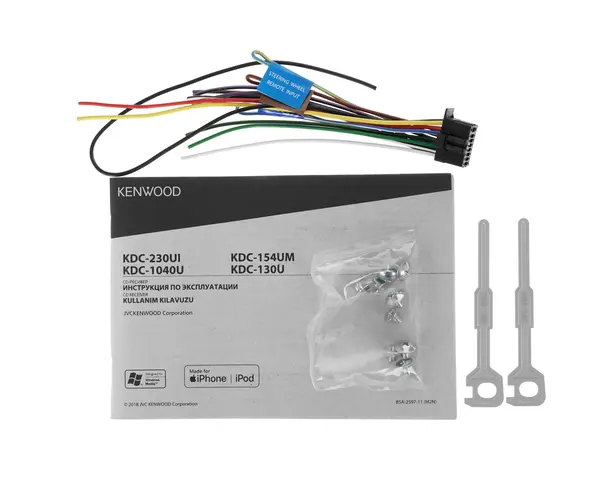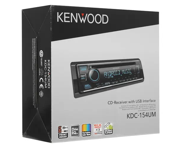 Автопроигрыватель KENWOOD KDC-154UM обладает многоцветной подсветкой, которая делает кнопки заметнее при слабом внешнем освещении. Сегментный дисплей транслирует необходимые пользователю данные в виде бегущих строк. Разъемы AUX, CD, USB помогают в подключении внешних устройств с сохраненными треками.