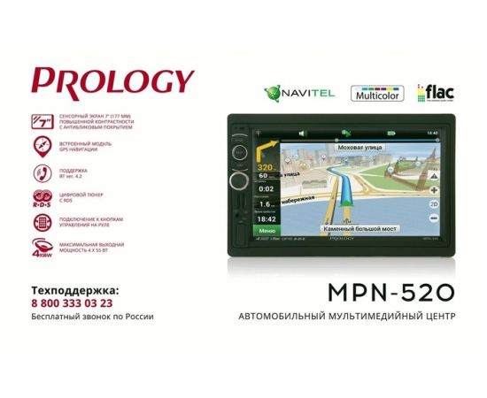 Автомагнитола Prology MPN-520 2DIN 4x55Вт ПО:Navitel