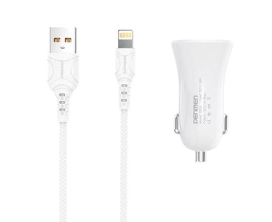 Автомобильное зарядное устройство 2в1 Denmen DZ06L, Apple 8 pin, 3.1А, 2 USB, 5V, 1.0 м, белый, фирменная упаковка