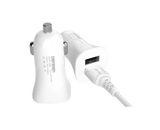 Автомобильное зарядное устройство 2в1 Denmen DZ06T, Type-C, 3.1А, 2 USB, 5V, 1.0 м, белый, фирменная упаковка