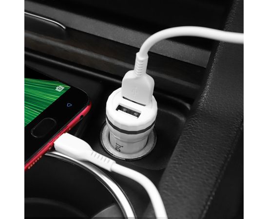 Автомобильное зарядное устройство HOCO Z27 Staunch, 2xUSB с Кабелем USB - Micro, 2.4A, белый