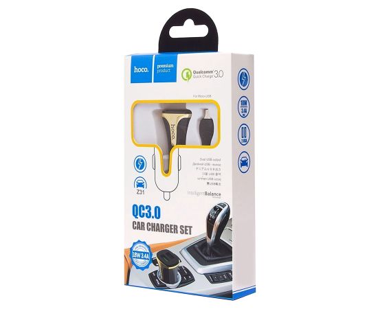 Автомобильное зарядное устройство HOCO Z31 Universe, 2xUSB с Кабелем USB - Micro, 3.4A, 18W, черный