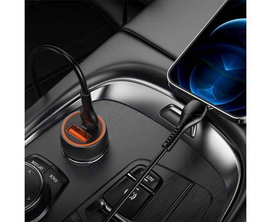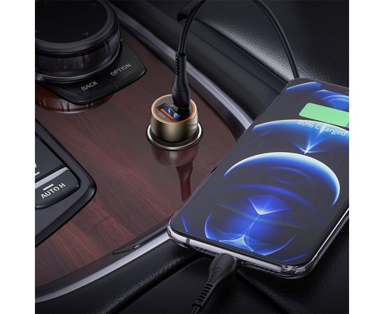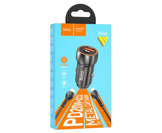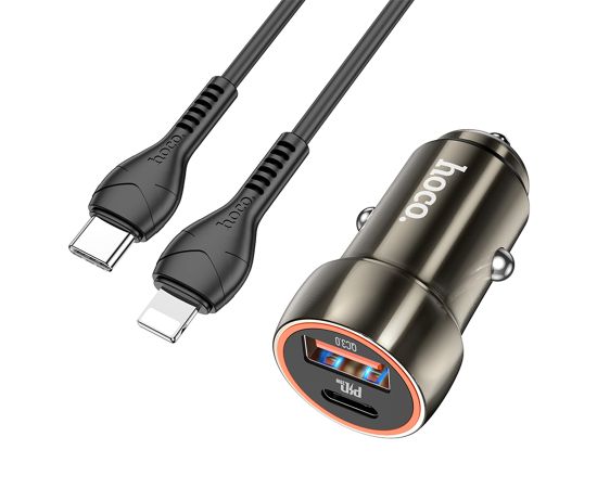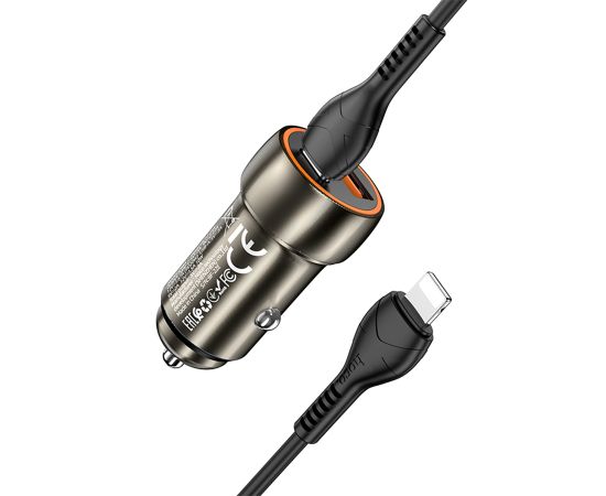 Автомобильное зарядное устройство HOCO Z46A Blue whale, 1xUSB + 1xUSB-C с Кабелем Type-C - Lightning, 3A, 18W, серый металлик
