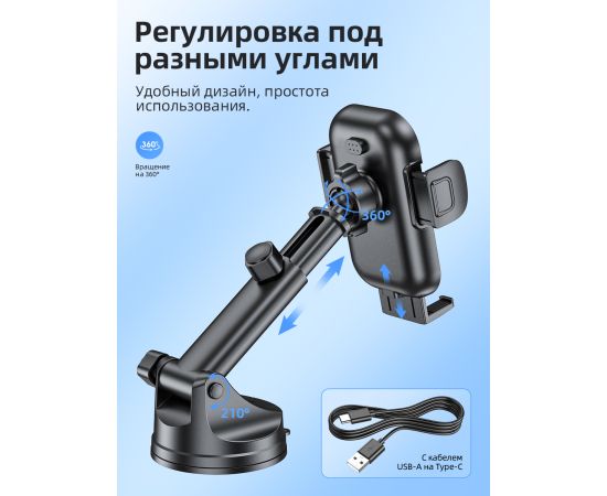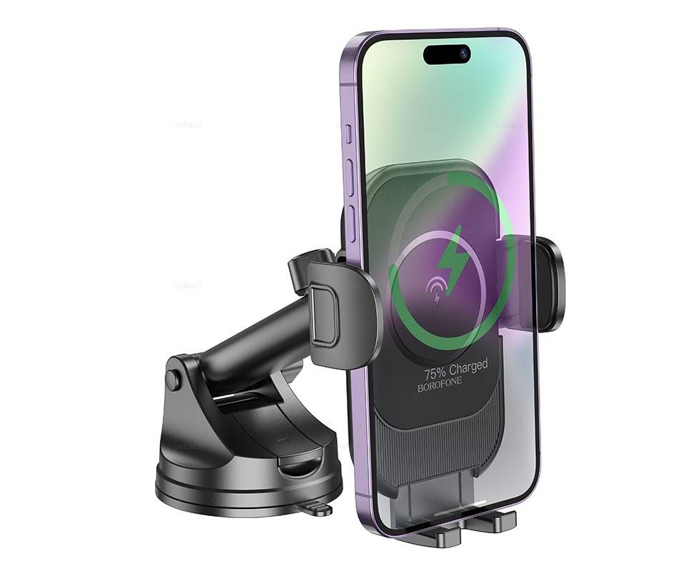 Автомобильный держатель BOROFONE BH203 Blue Charm wireless fast charging (center console) (черный) (акция)