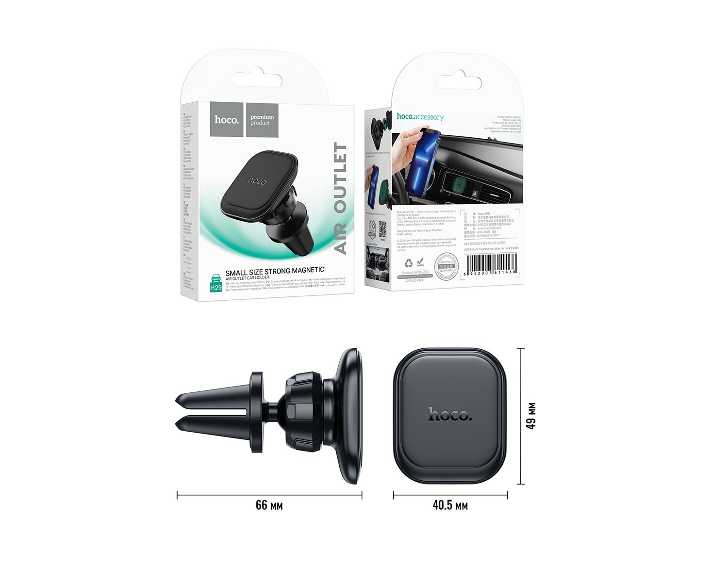 Автомобильный держатель HOCO H29 Brilliant magnetic car holder(air outlet) (черный)