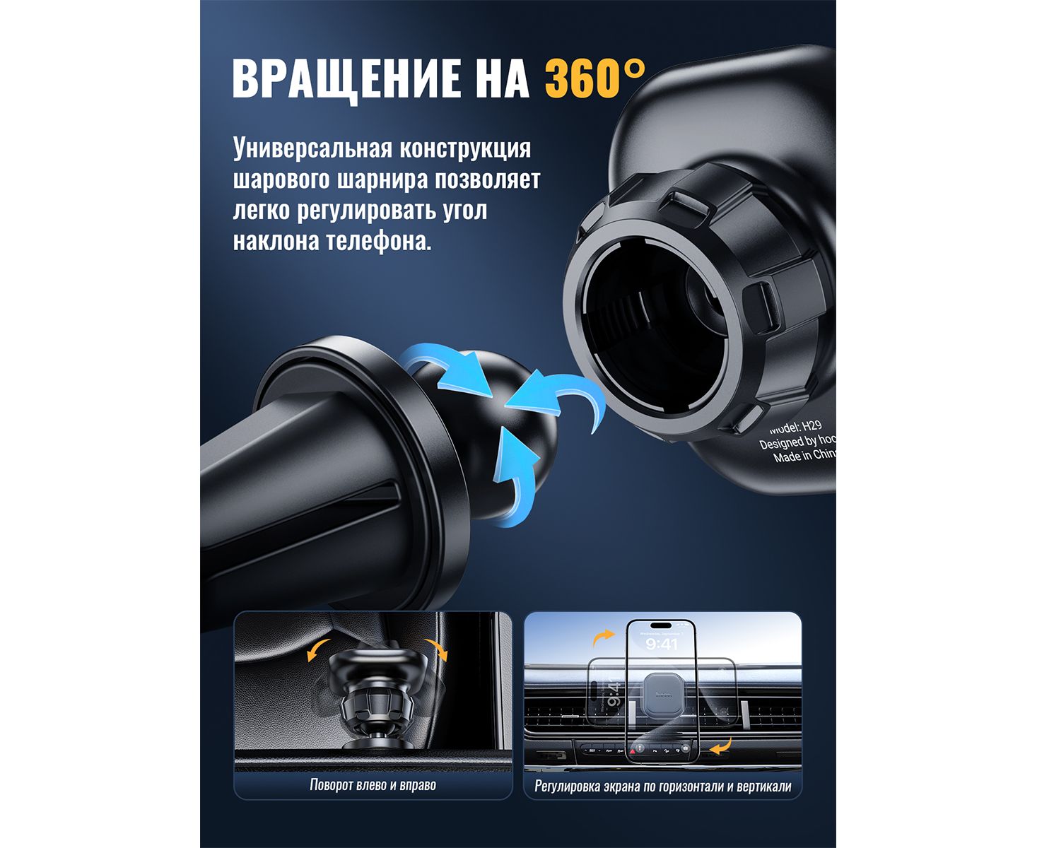 Особенности держателя: Поворот на 360 градусов, Магнитный держатель, Подходит для смартфонов