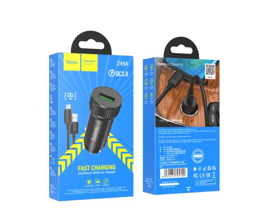 АЗУ 1USB 3.0A QC3.0 быстрая зарядка для micro USB Hoco Z49A (Black)