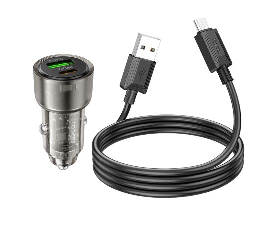 АЗУ 1USB+1Type-C 3.0A PD38W+QC3.0 быстрая зарядка для micro USB Hoco Z52 (Transparent Black)
