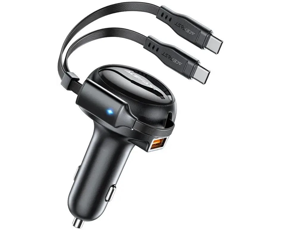 АЗУ ACEFAST AF-B13-BK 53W 2-in-1 USB-A/2*USB-C car charger with retractable cable Black
