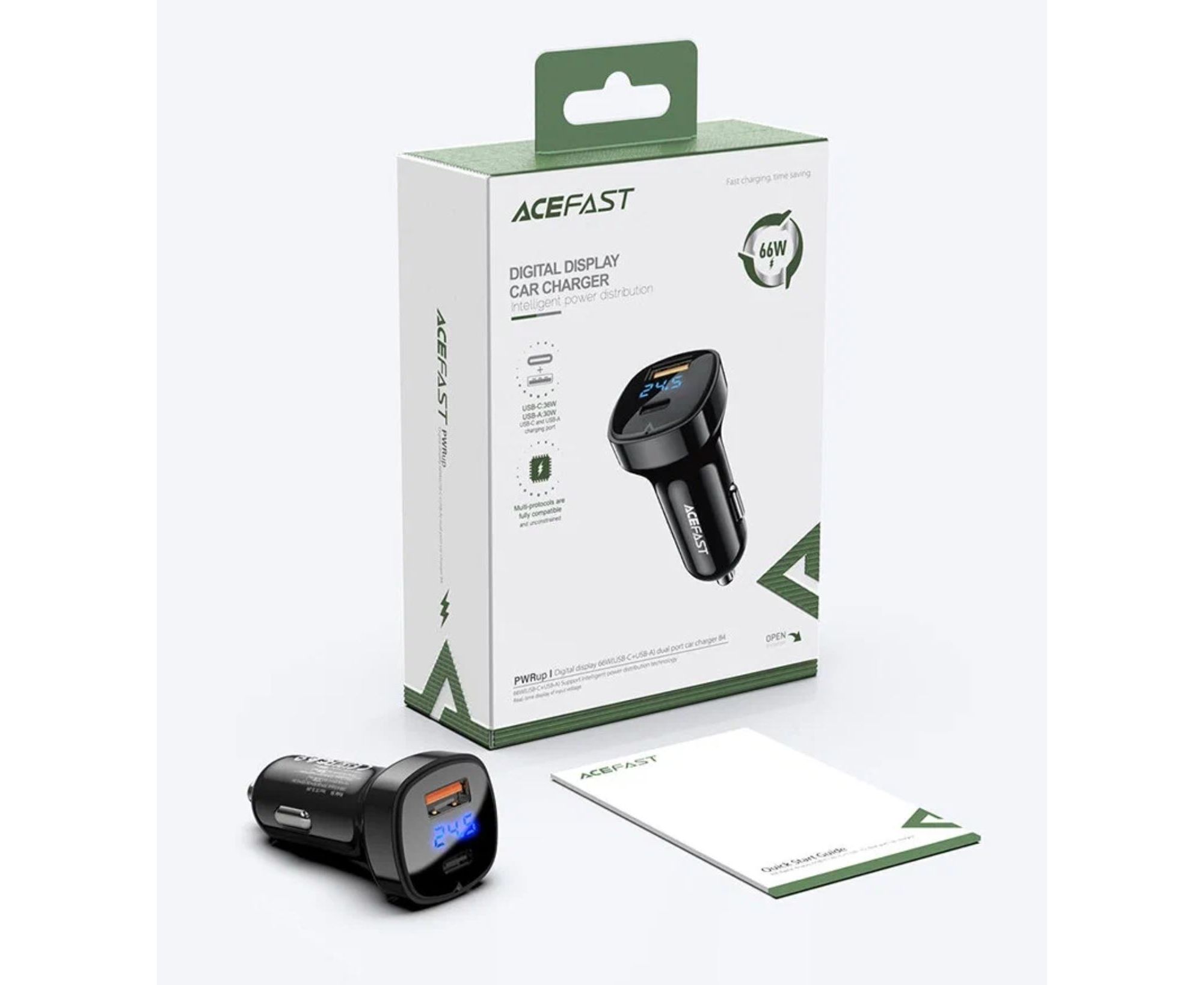 АЗУ ACEFAST B4 digital display 66W(USB-C+USB-A) dual port, black