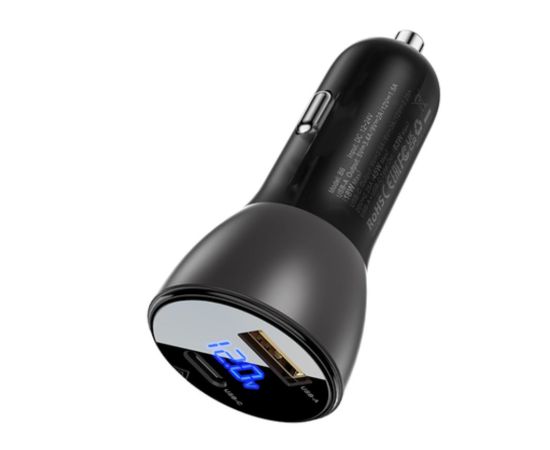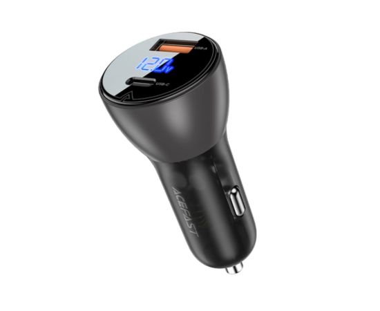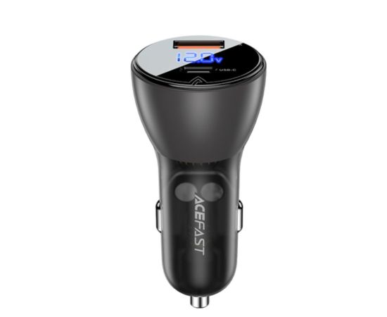 АЗУ ACEFAST B6 metal car charger 63W (USB-A+USB-C) with digital display transparent, black