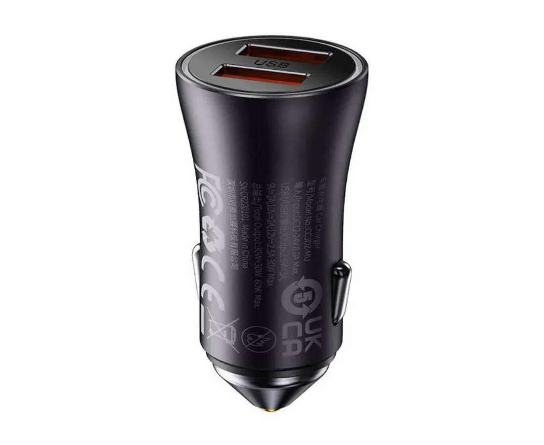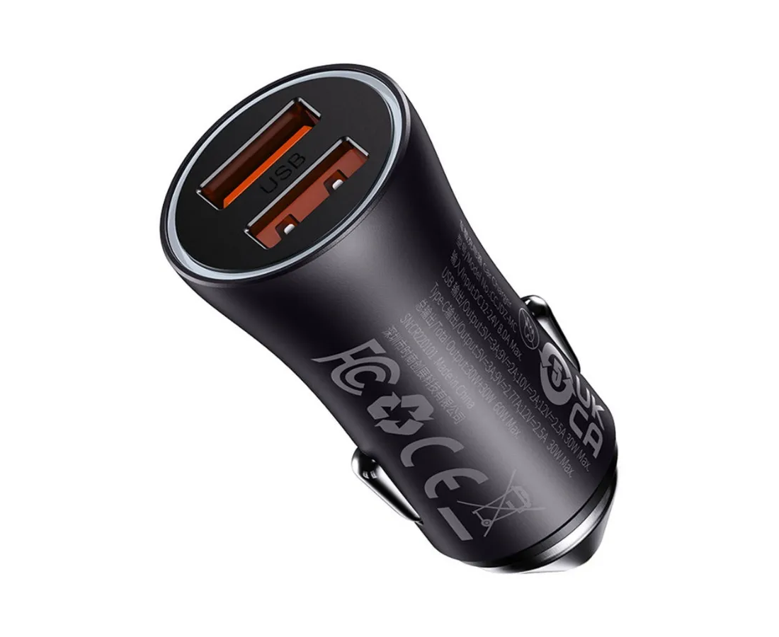 АЗУ Baseus CGJM000013 Golden Contactor Max Dual Fast Charger Car Charger U+U 60W Dark Gray