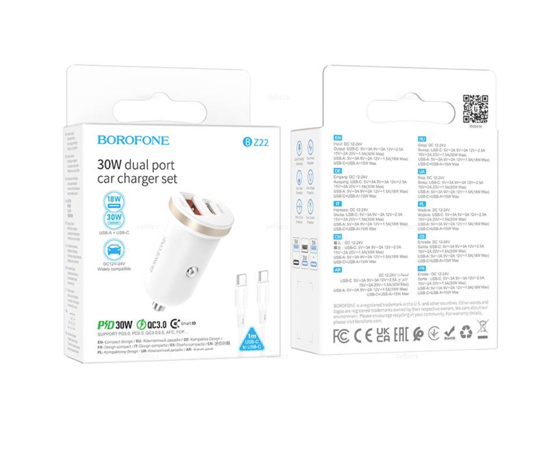 АЗУ BOROFONE BZ22 с двумя портами PD30W + QC3.0 (белый)