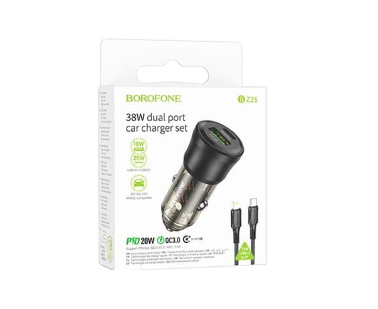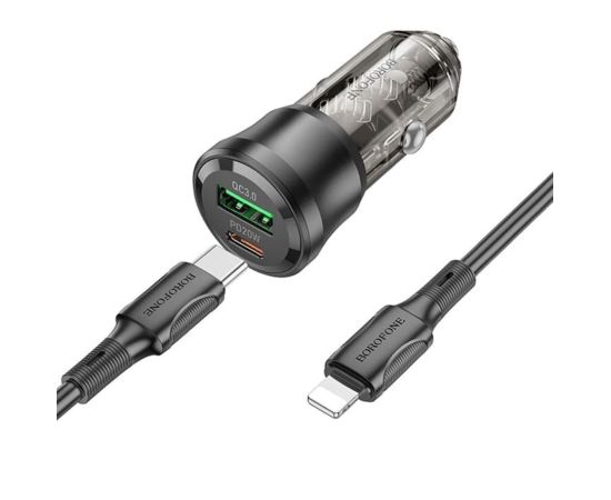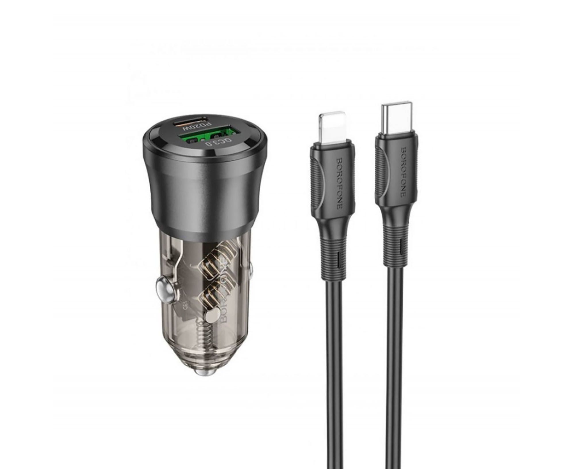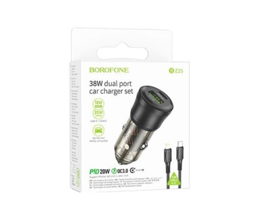 АЗУ BOROFONE BZ25 Journey PD38W Type-C+USB-A car charger set (Type-C to iP) 1м (прозрачный-черный)