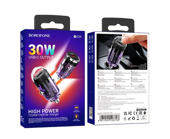 АЗУ BOROFONE BZ29 Ray single port PD30W car charger (фиолетовый)