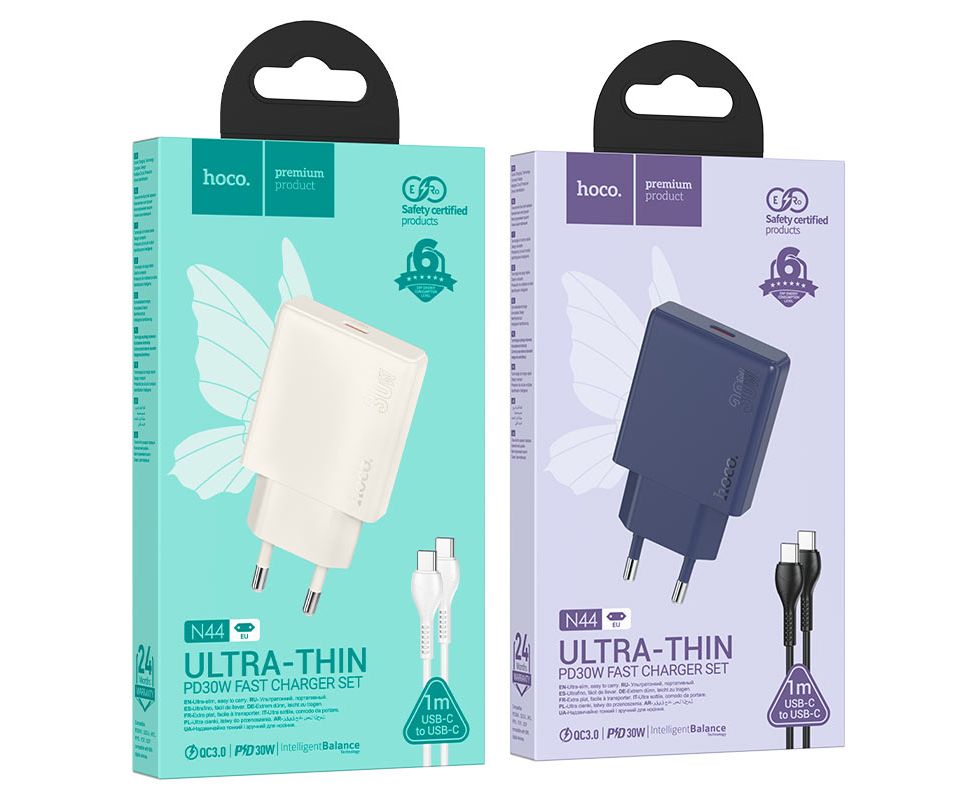 СЗУ HOCO N44 Biscuit single port PD30W charger set(Type-C + Type-C)(EU) (титаново-голубой)