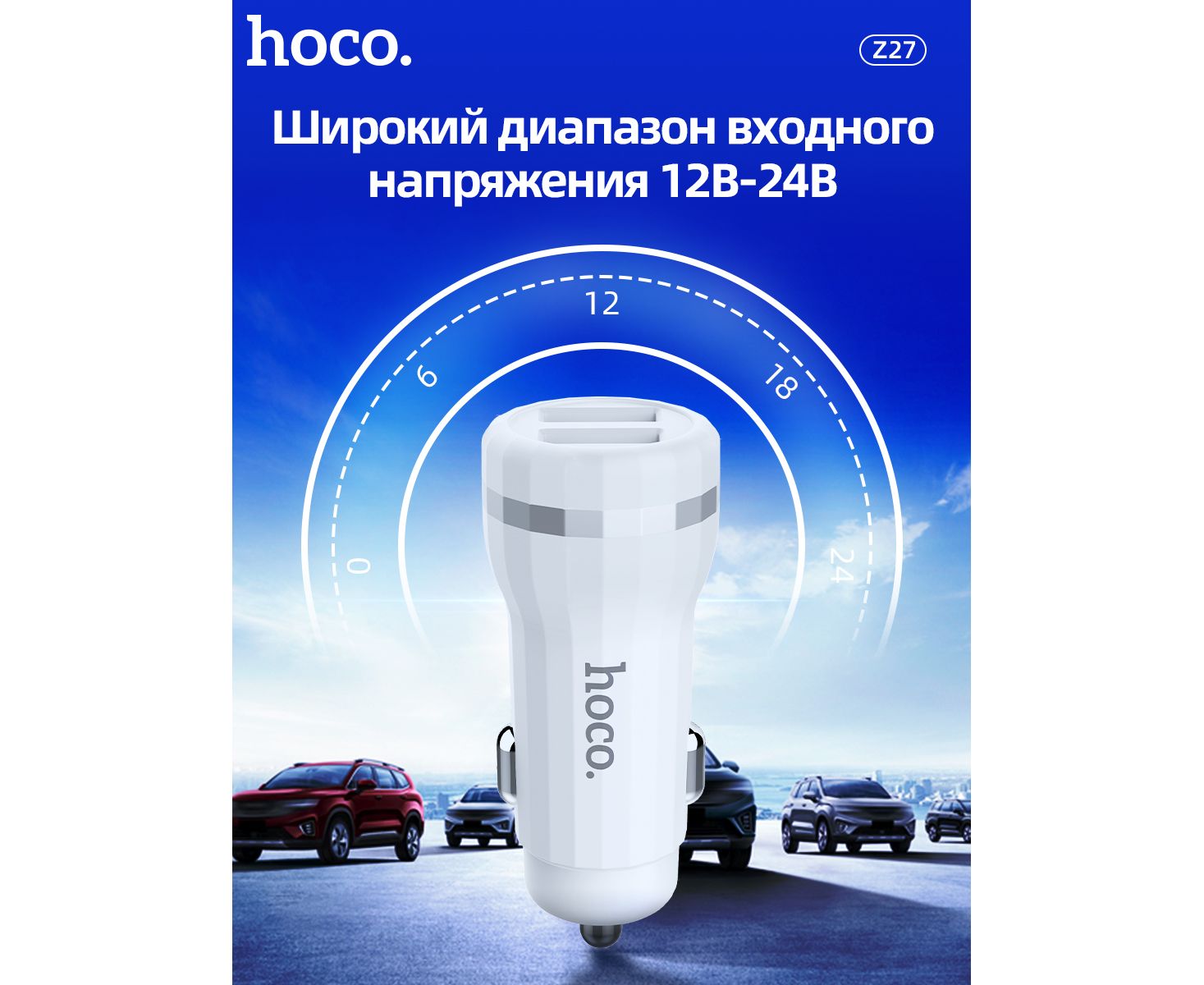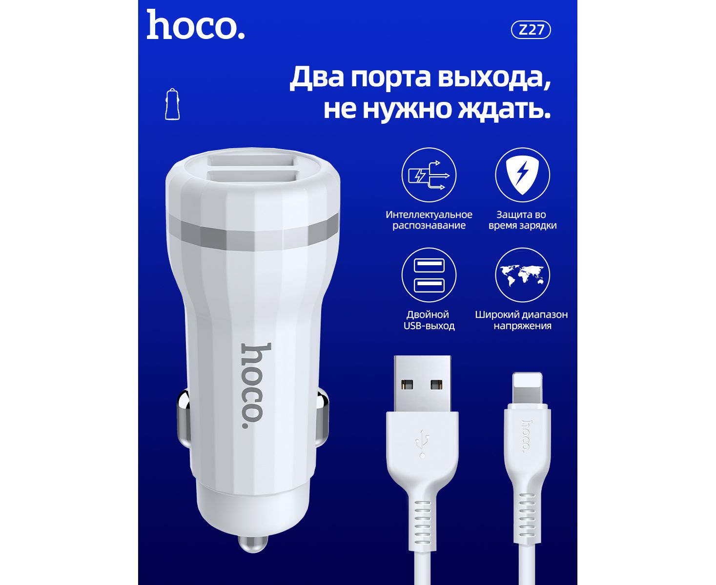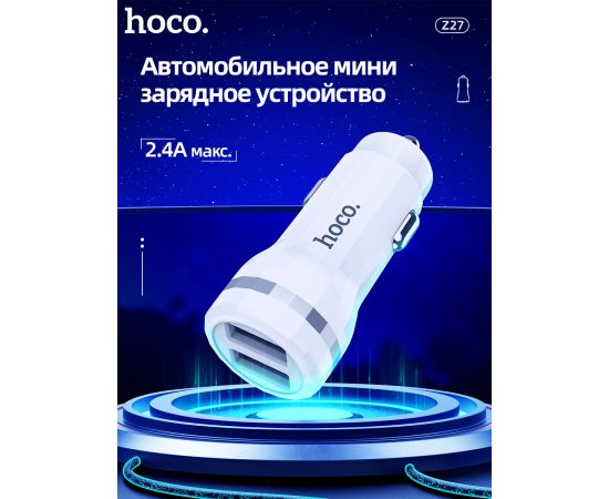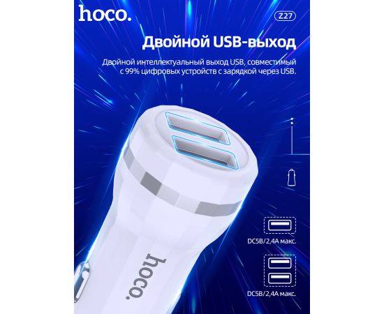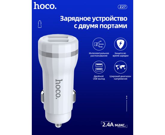АЗУ HOCO Z27 Staunch dual port+Lightning 2.4A White