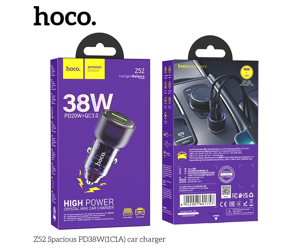 АЗУ HOCO Z52 Spacious PD38W(1C1A) (прозрачно фиолетовый)