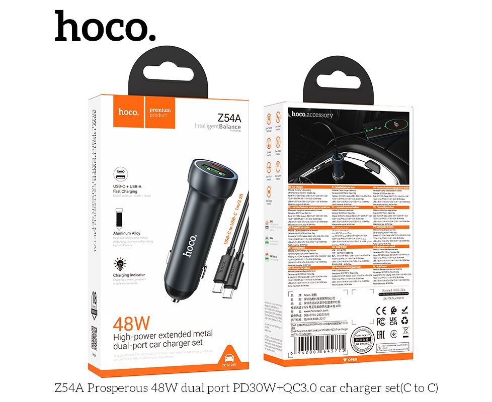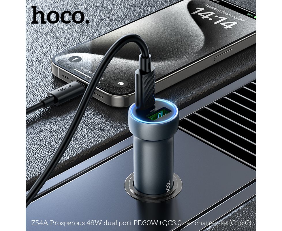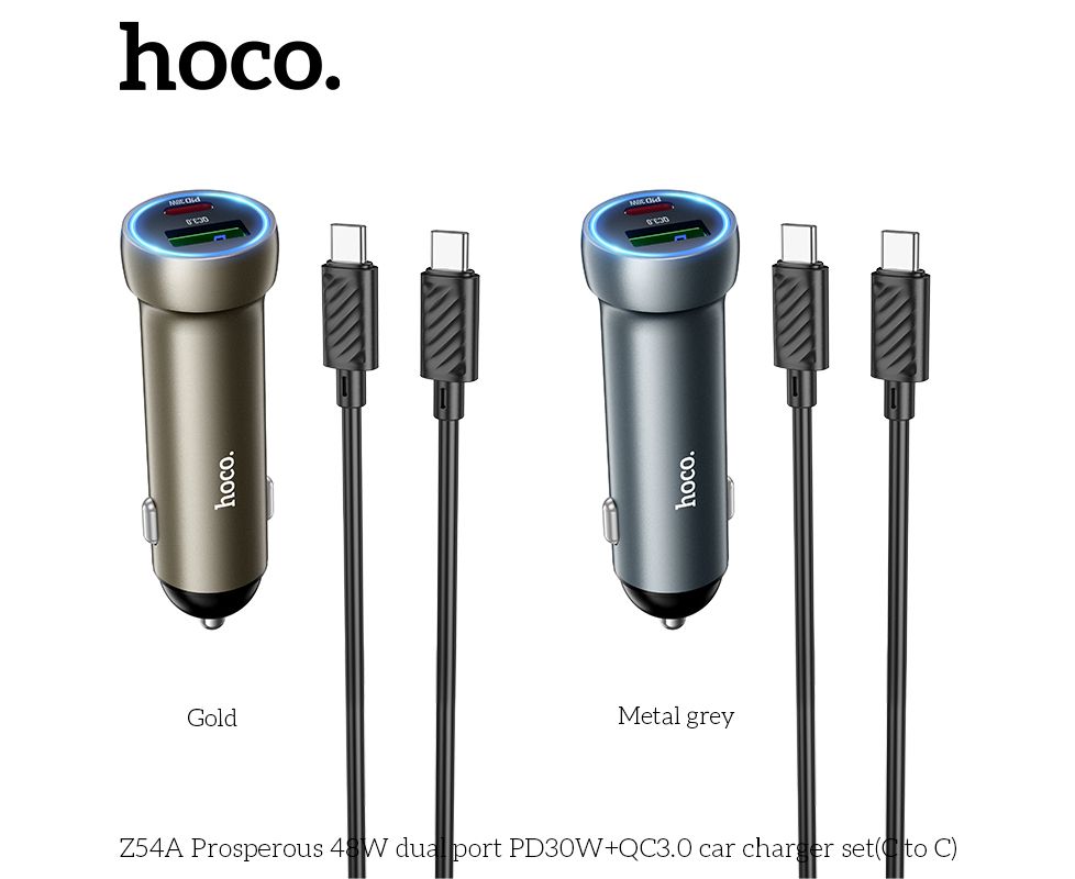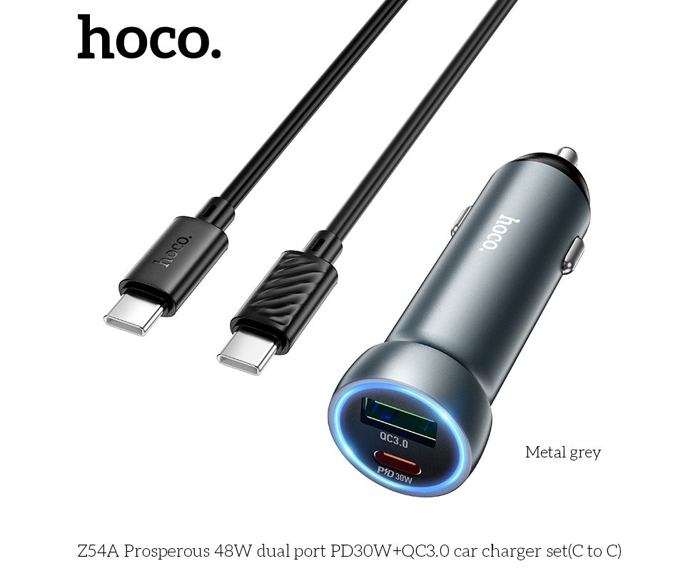 АЗУ HOCO Z54A Prosperous 48W dual port PD30W+QC3.0 + cabel (C to C) (металлически серый)