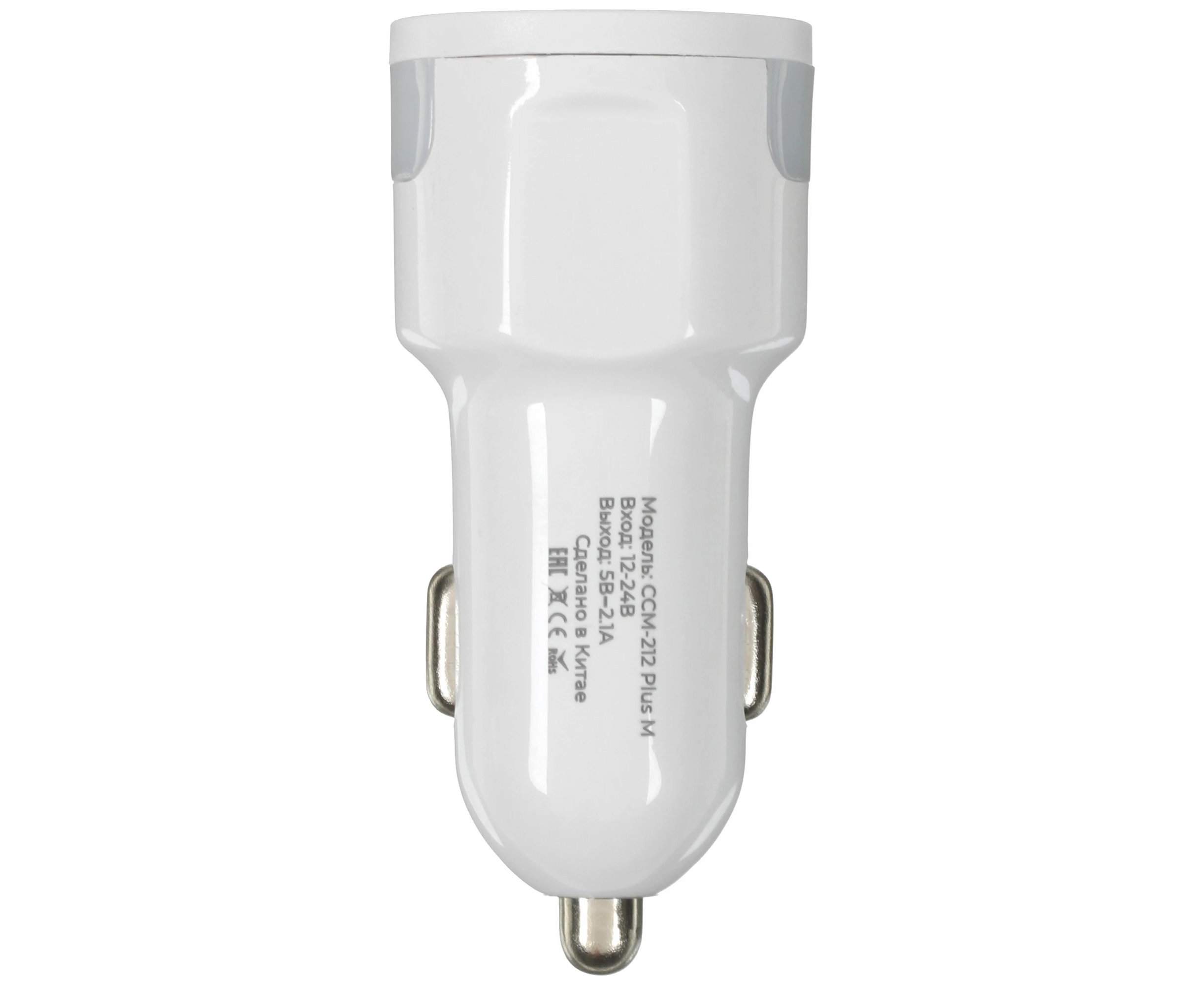 АЗУ Maxvi CCM-212 Plus M white 2.1A, 2xUSB, microUSB подсветка синяя