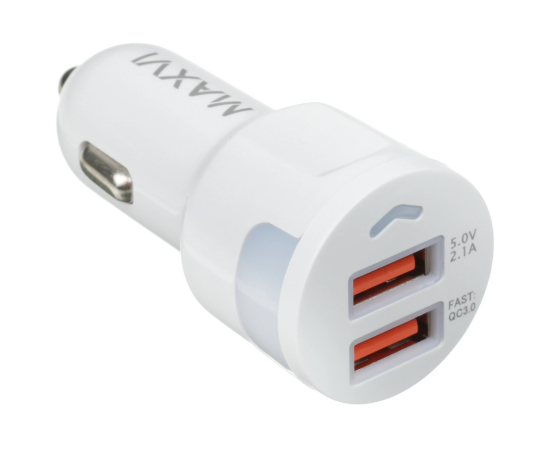 АЗУ Maxvi CCM-522 white 5.2A, 2xUSB, QC3.0 подсветка синяя