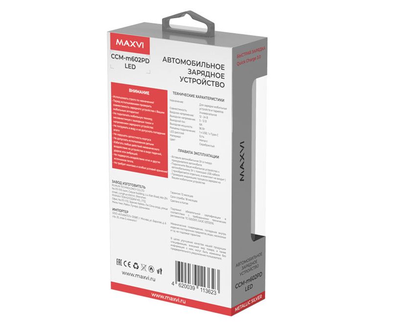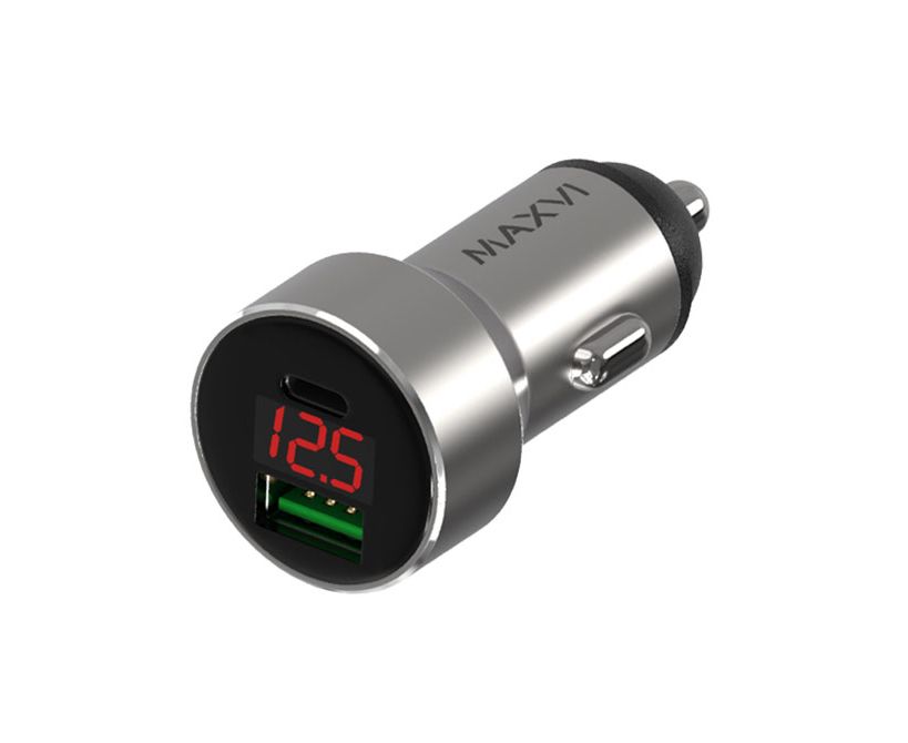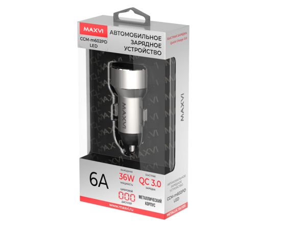 Автомобильное ЗУ MAXVI CCM-M602PD LED metallic silver