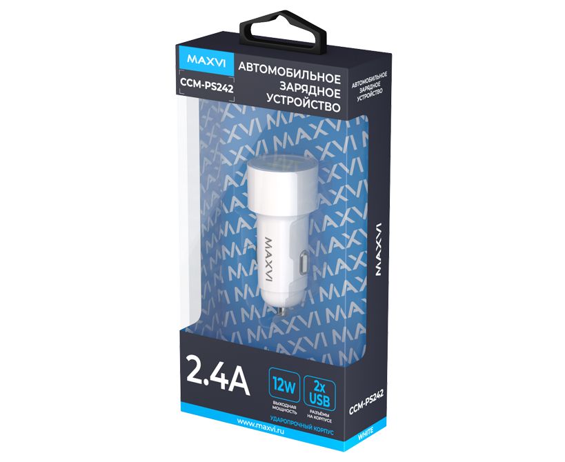 АЗУ Maxvi CCM-PS242 white 2.4A 12W, 2xUSB