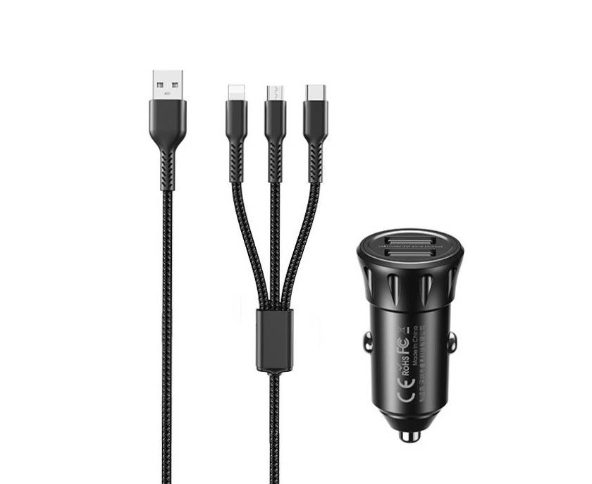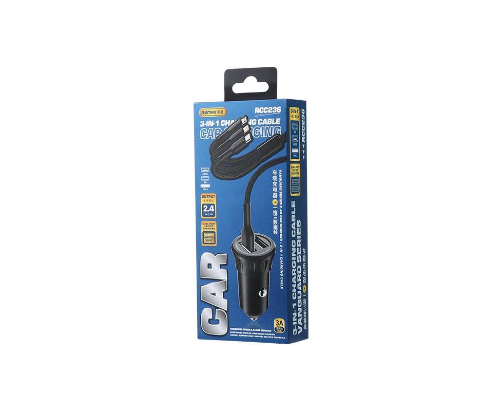 АЗУ REMAX Vanguard Series 2.4A Car Charger 3-in-1 Charging Cable (черный)