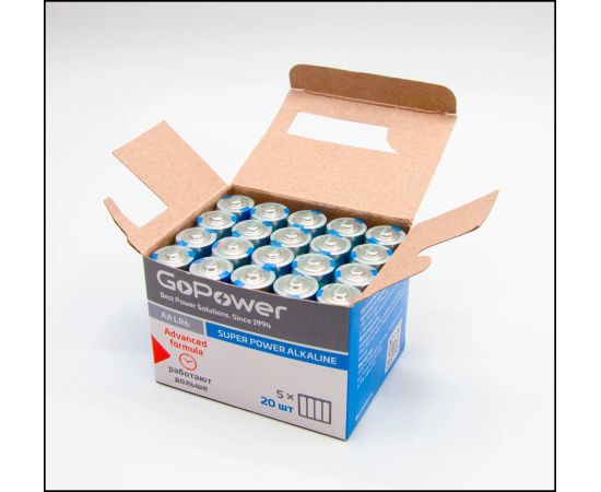Батарейка GoPower LR6 AA BOX20 Shrink 4 Alkaline 1.5V (4/20/640)