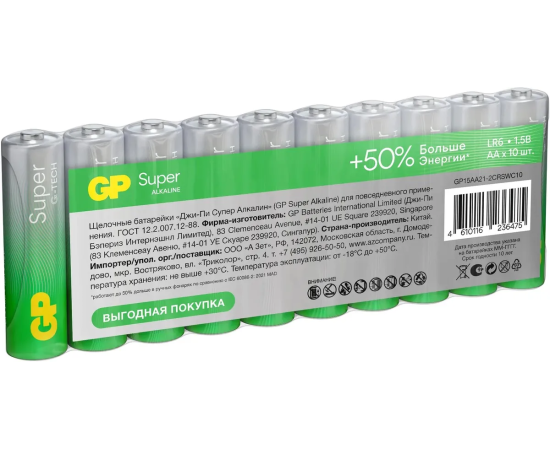 Батарея GP Super Alkaline 15AA21-2CRSWC10 AA (10шт) спайка