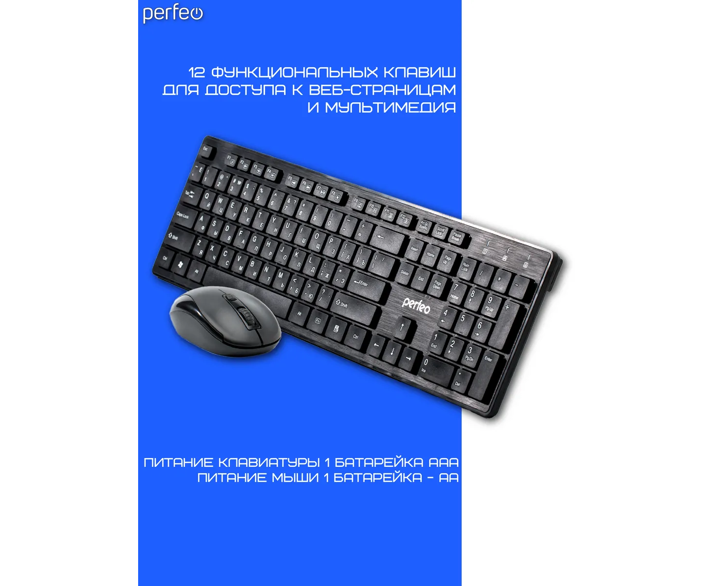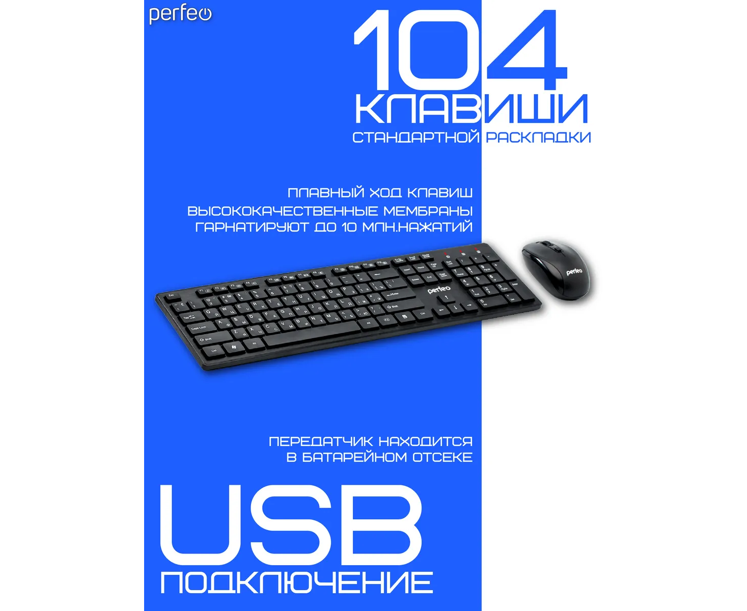 Беспроводной набор клавиатура + оптическая мышь Perfeo "TWIN": USB, (Арт. PF_A4500)
