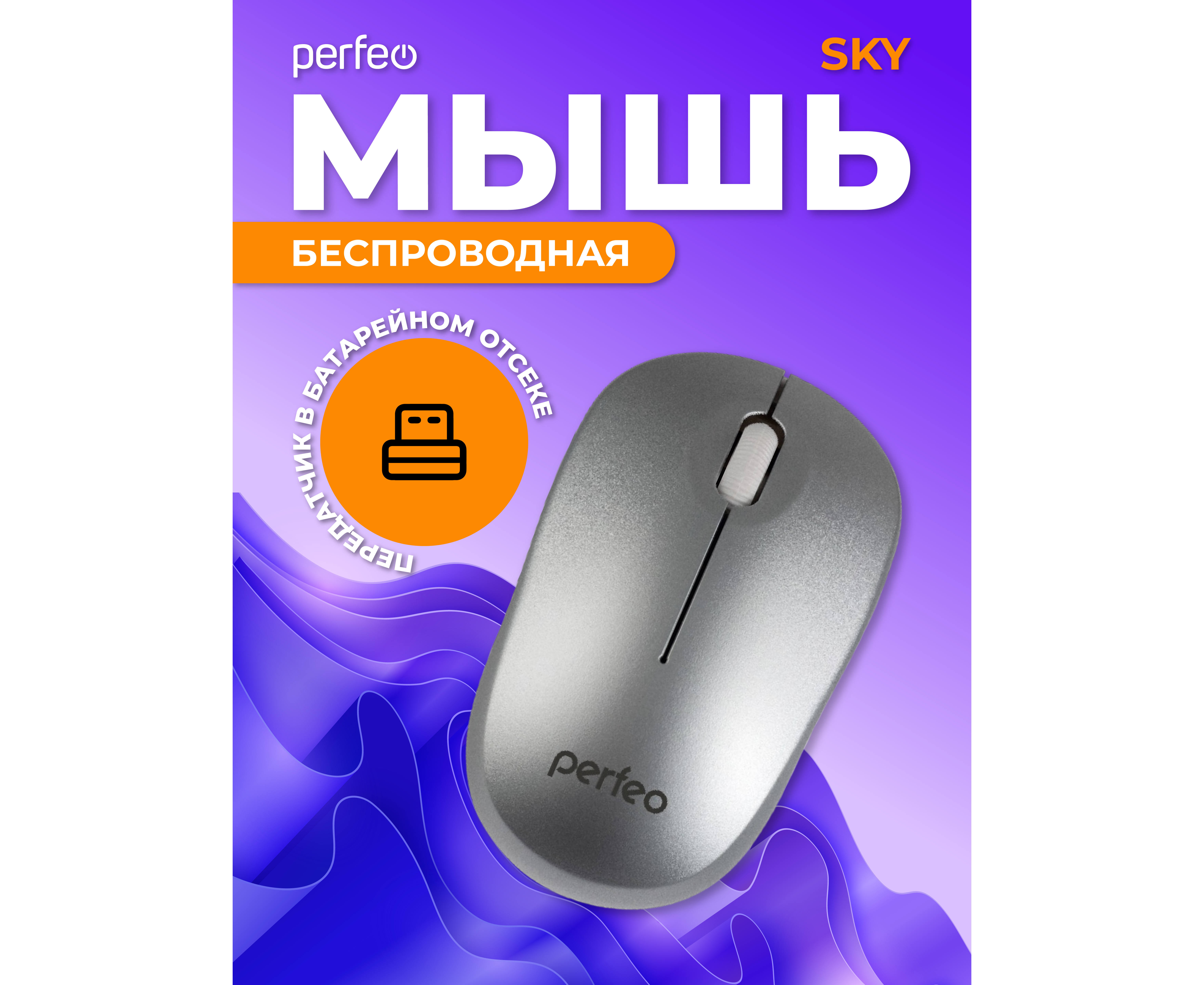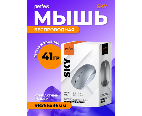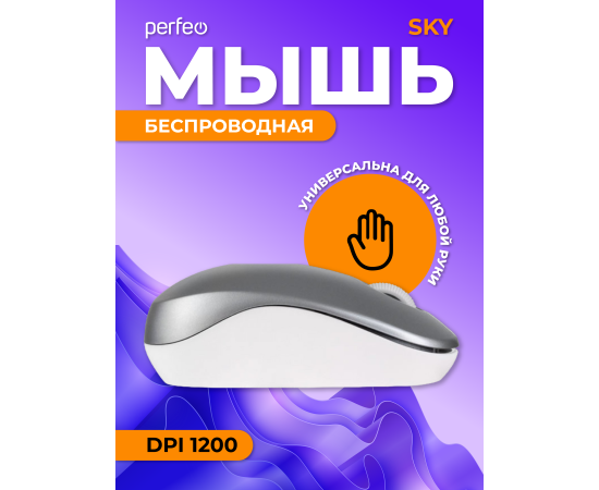 Беспроводная мышь Perfeo, оптич. "SKY", 3 кн, DPI 1200, USB, серебряный, (Арт. PF_A4506)