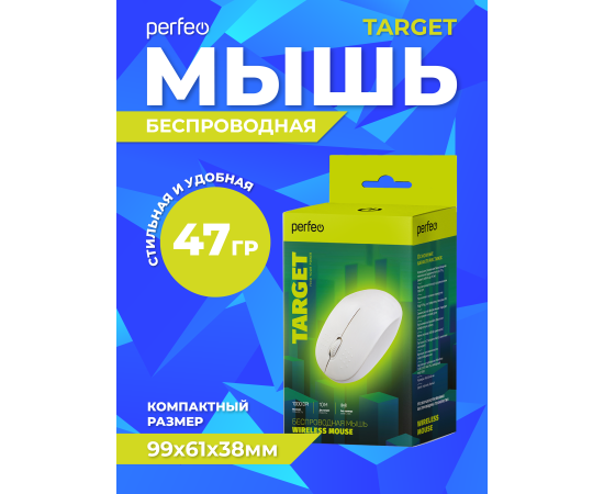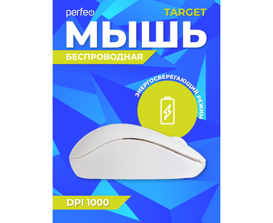 Беспроводная мышь Perfeo, оптич. "TARGET", 3 кн, DPI 1000, USB, белый