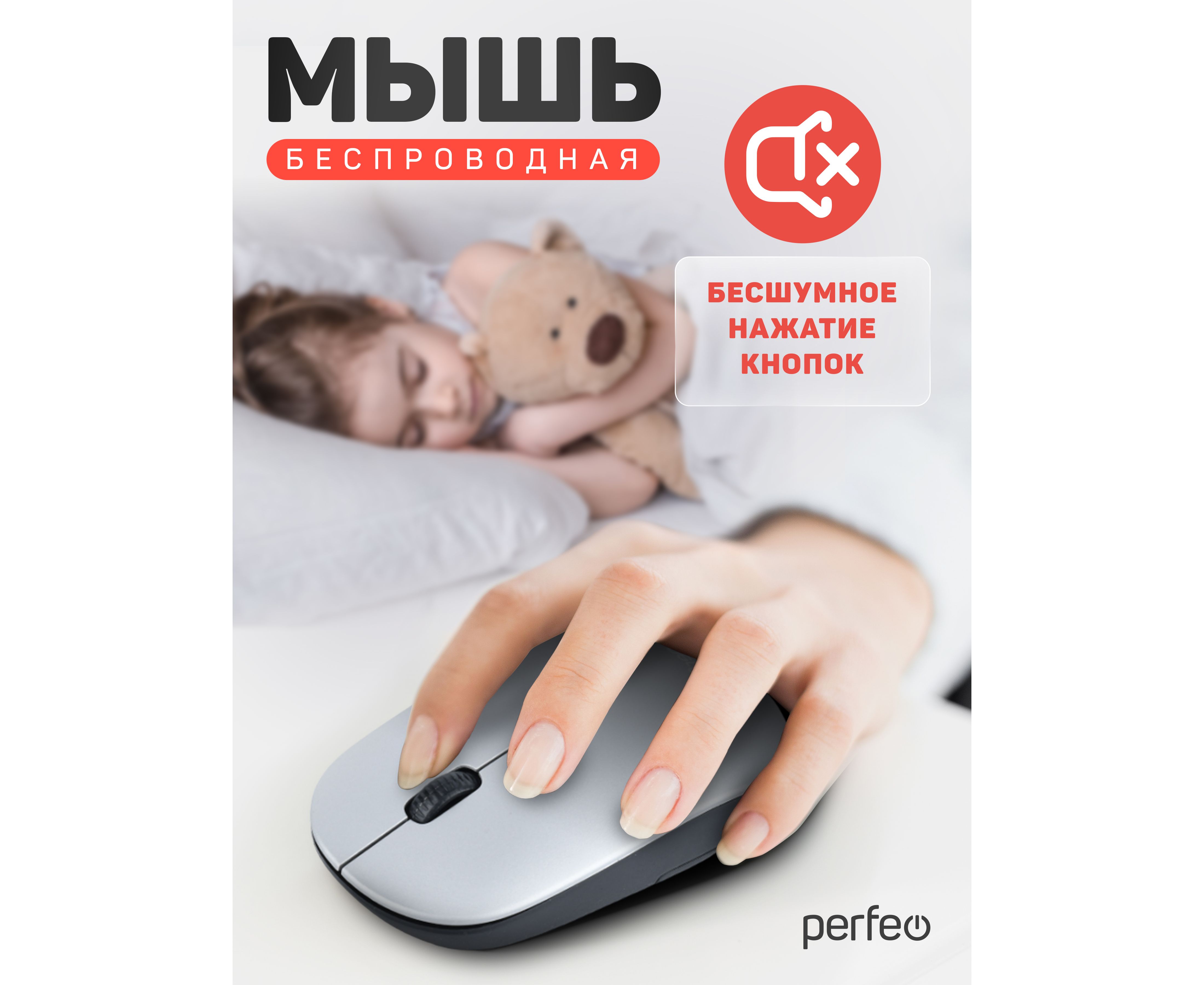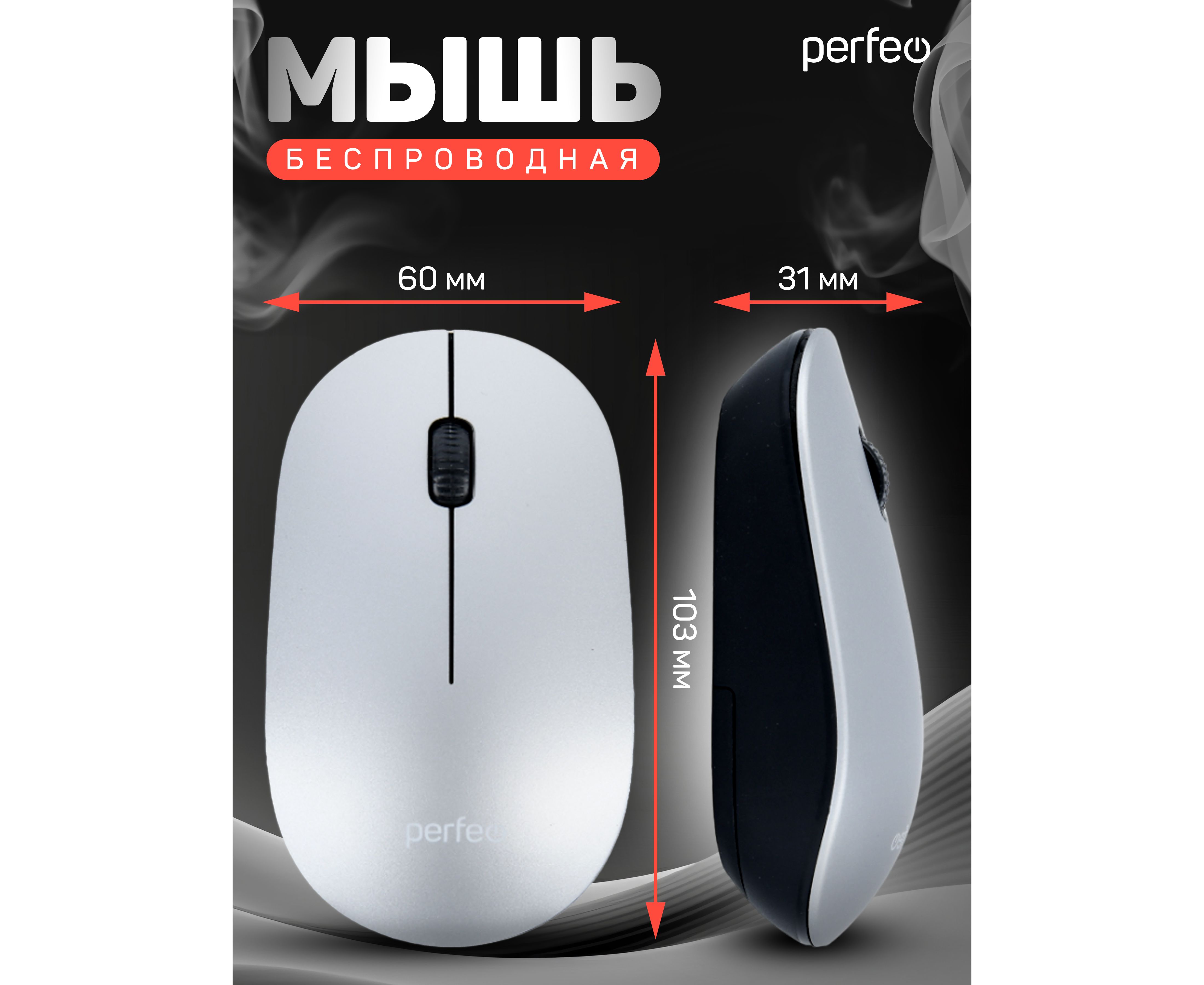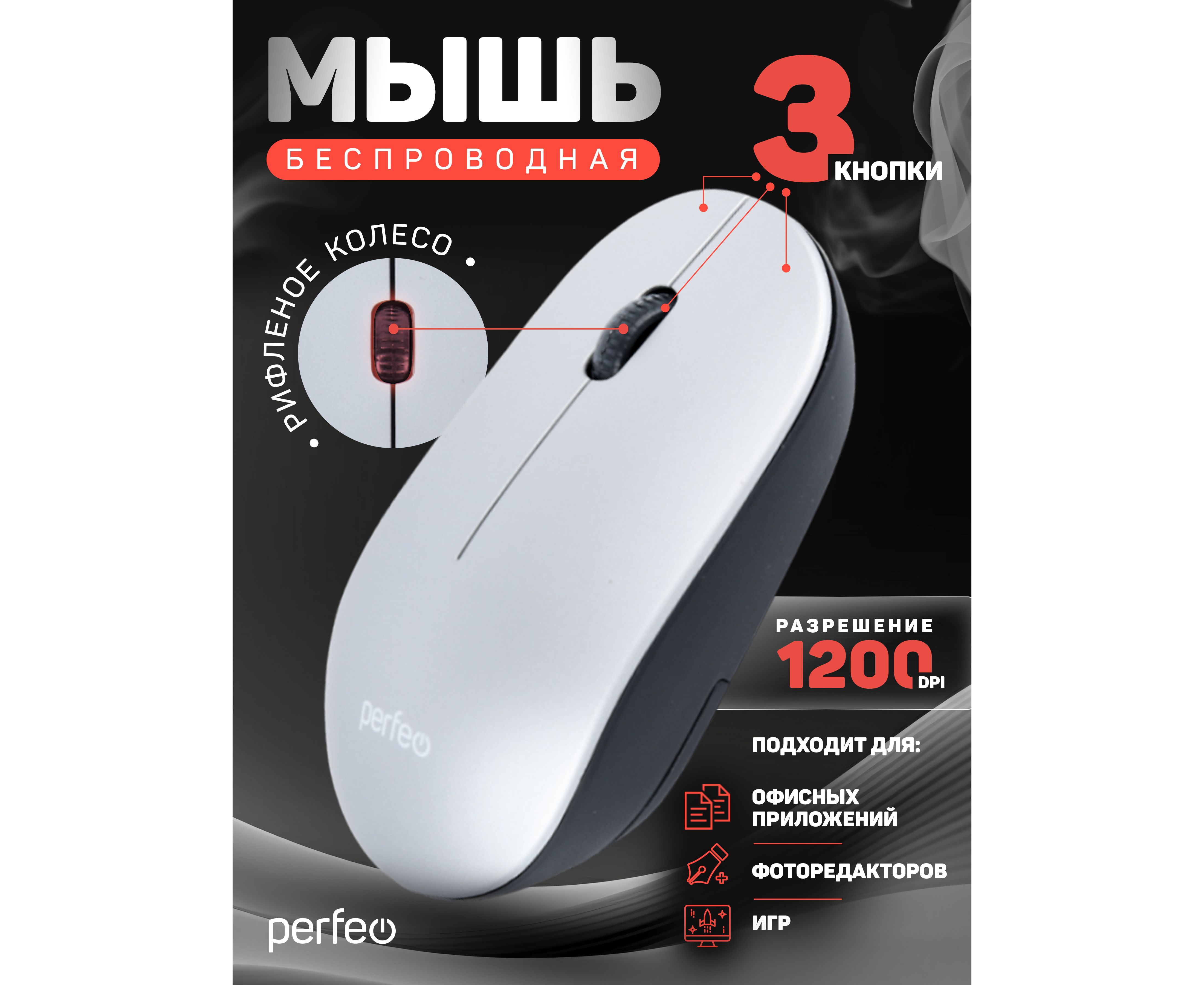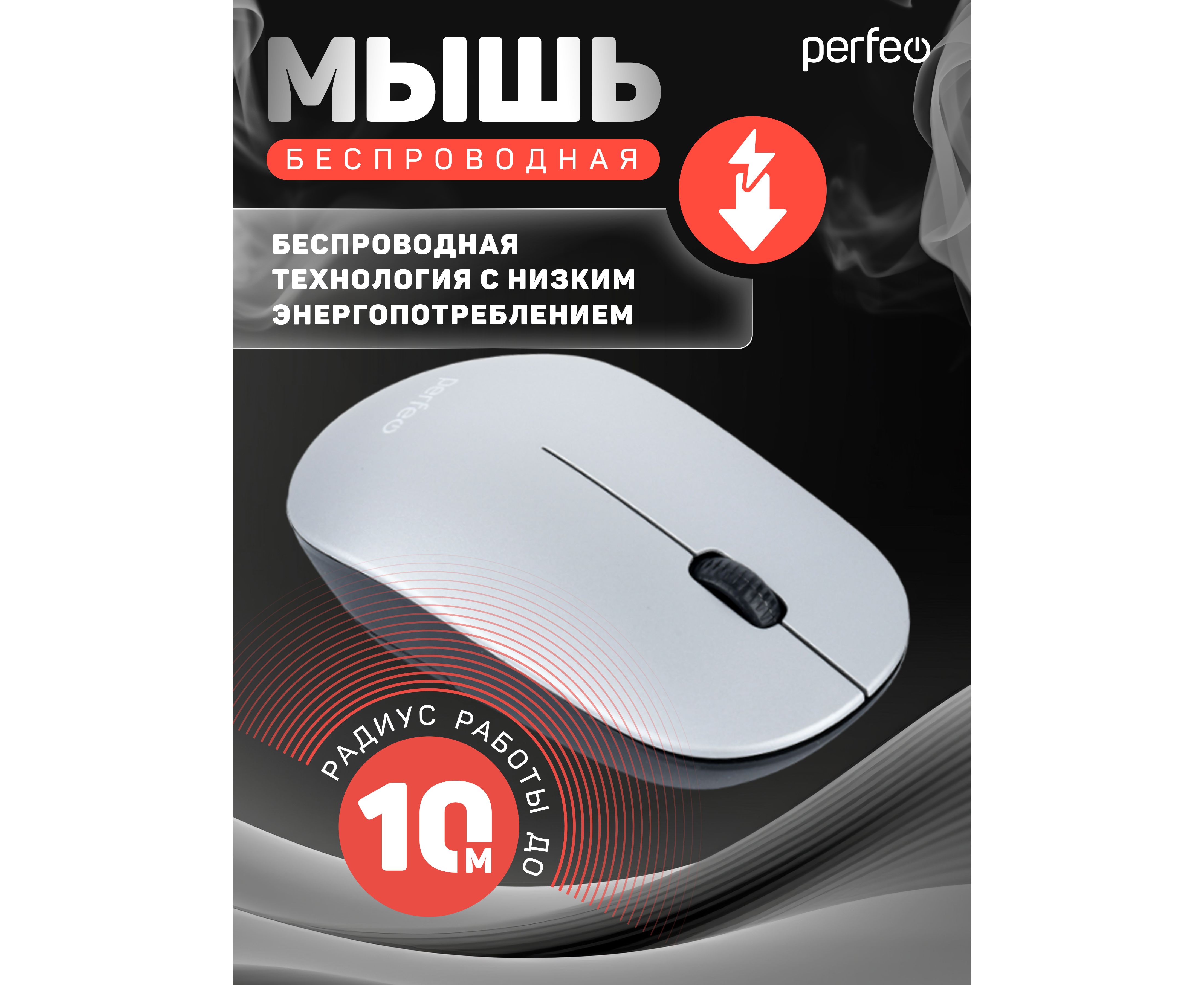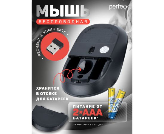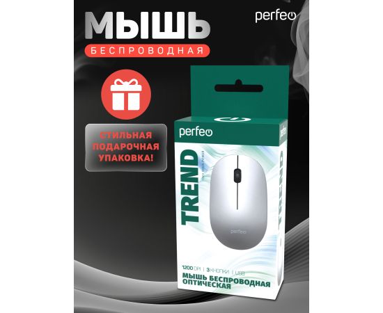 Беспроводная мышь Perfeo, оптич. "TREND", 3 кн, DPI 1200, USB, серый, (Арт. PF_B4907)