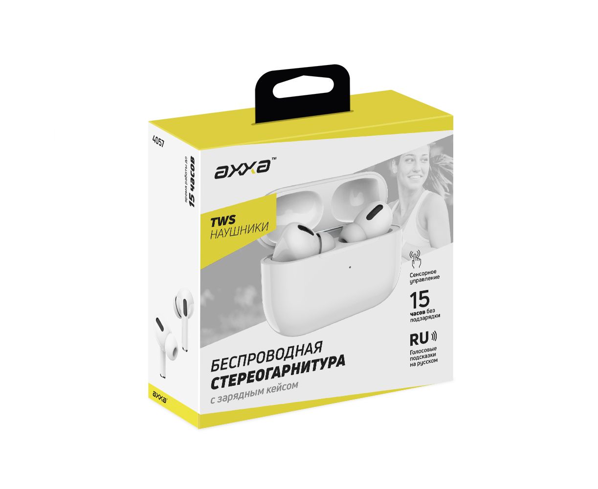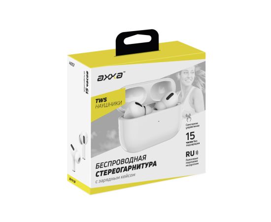 Беспроводная стереогарнитура AB-06, BT 5.3, зарядный чехол 230 мАч, белый, AXXA