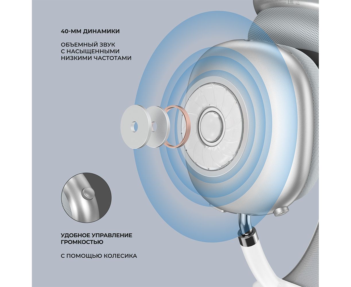 Беспроводные накладные наушники Stereo Life, BT 5.4, 350мАч, серебристый, Deppa