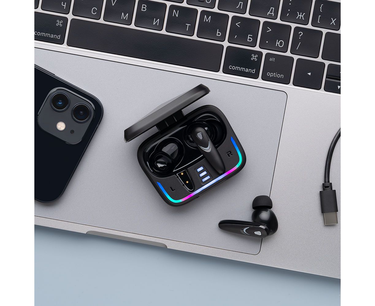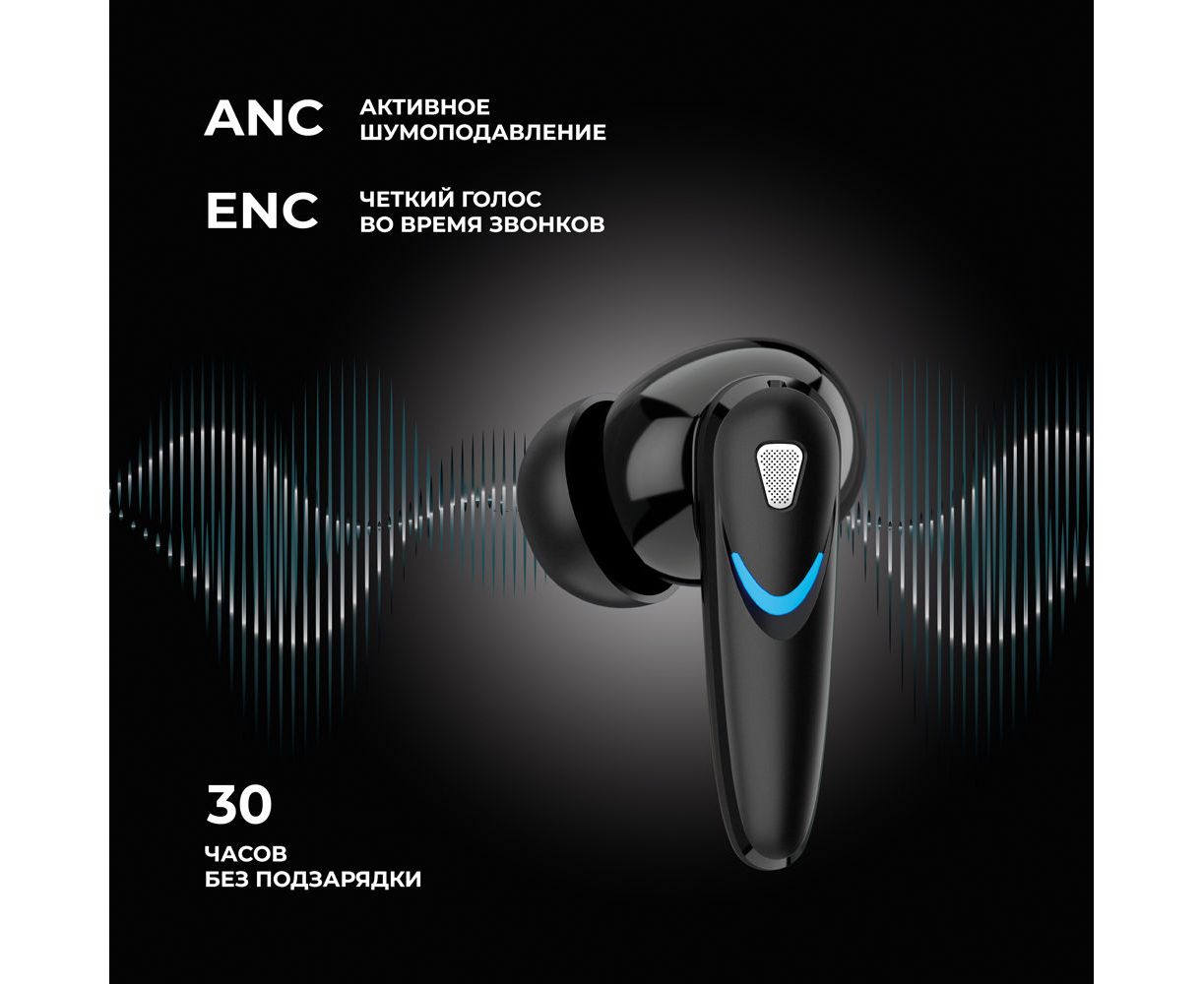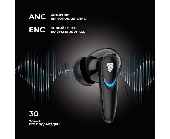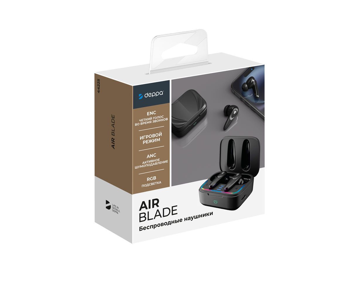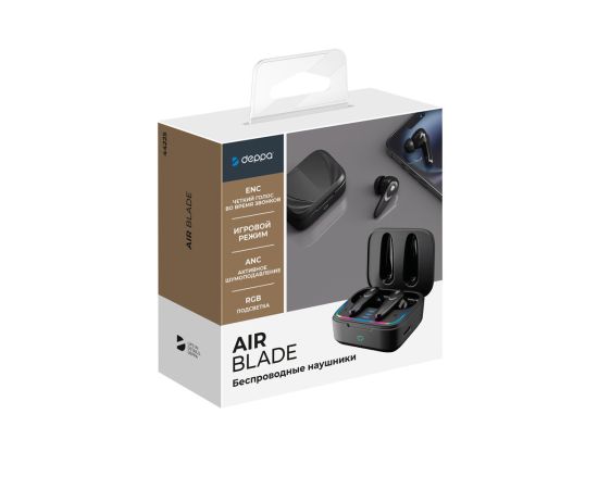 Беспроводные наушники с микрофоном Air Blade, TWS, BT 5.4, ANC, Gaming, 470 мАч, черный, Deppa